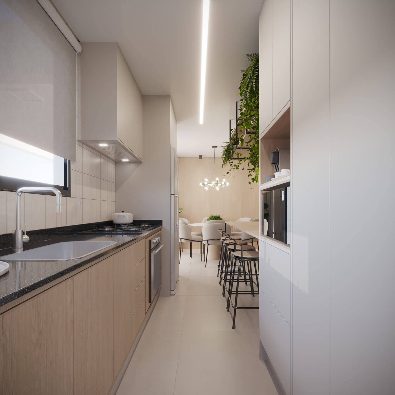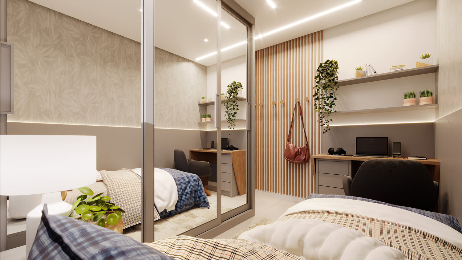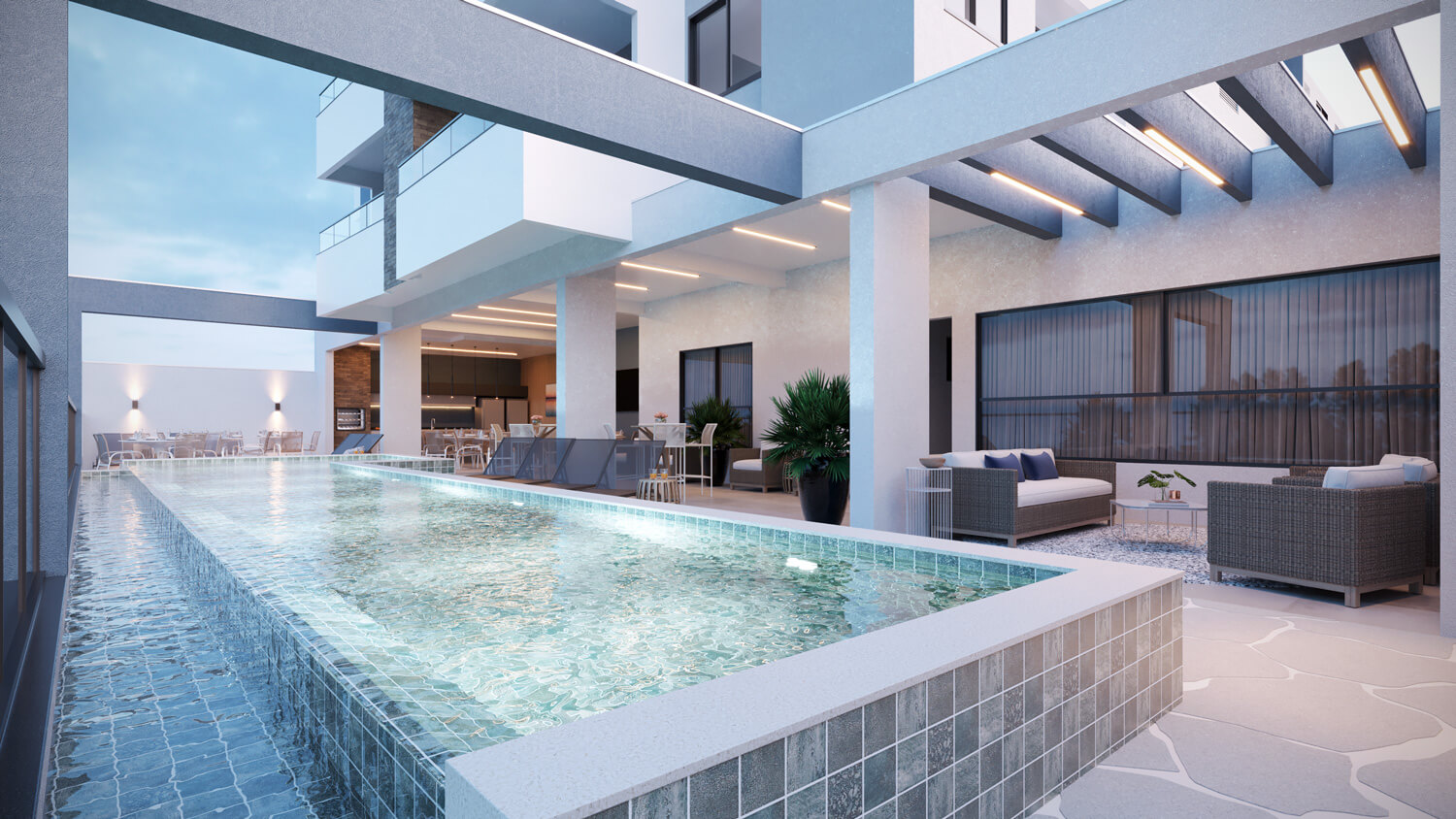 Possui também espaços de lazer e convívio que trazem vida e comodidade ao empreendimento, sendo ideal para famílias, investidores e para todos que buscam um padrão de apartamento menor sem abrir mão das comodidades recreativas e funcionais de um edifício moderno.